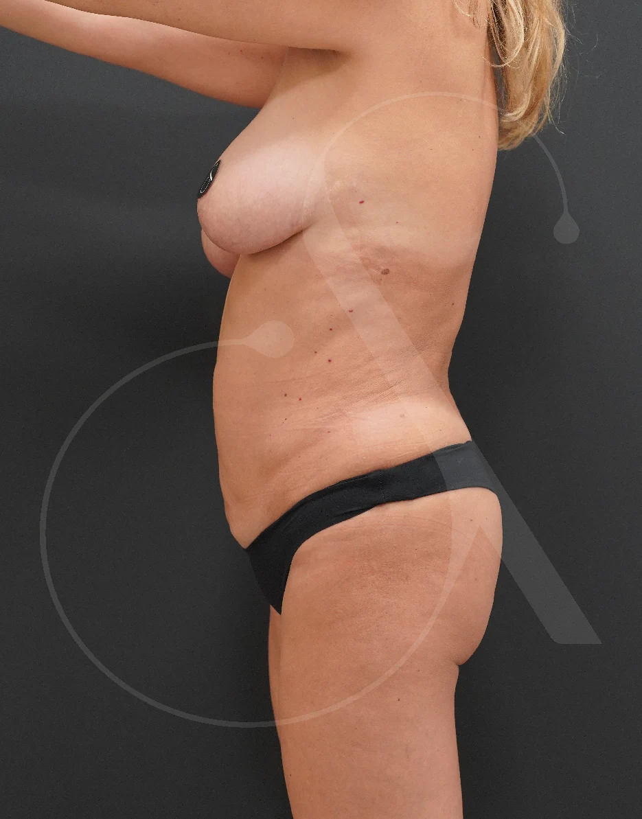 Γυναίκα 49 ετών, μητέρα δύο παιδιών, ύψους 1,58 και βάρους 54 kg με πτωτικούς μαστούς,τοπικό πάχος και χαλάρωση στην κοιλιά μετά τις γέννες.